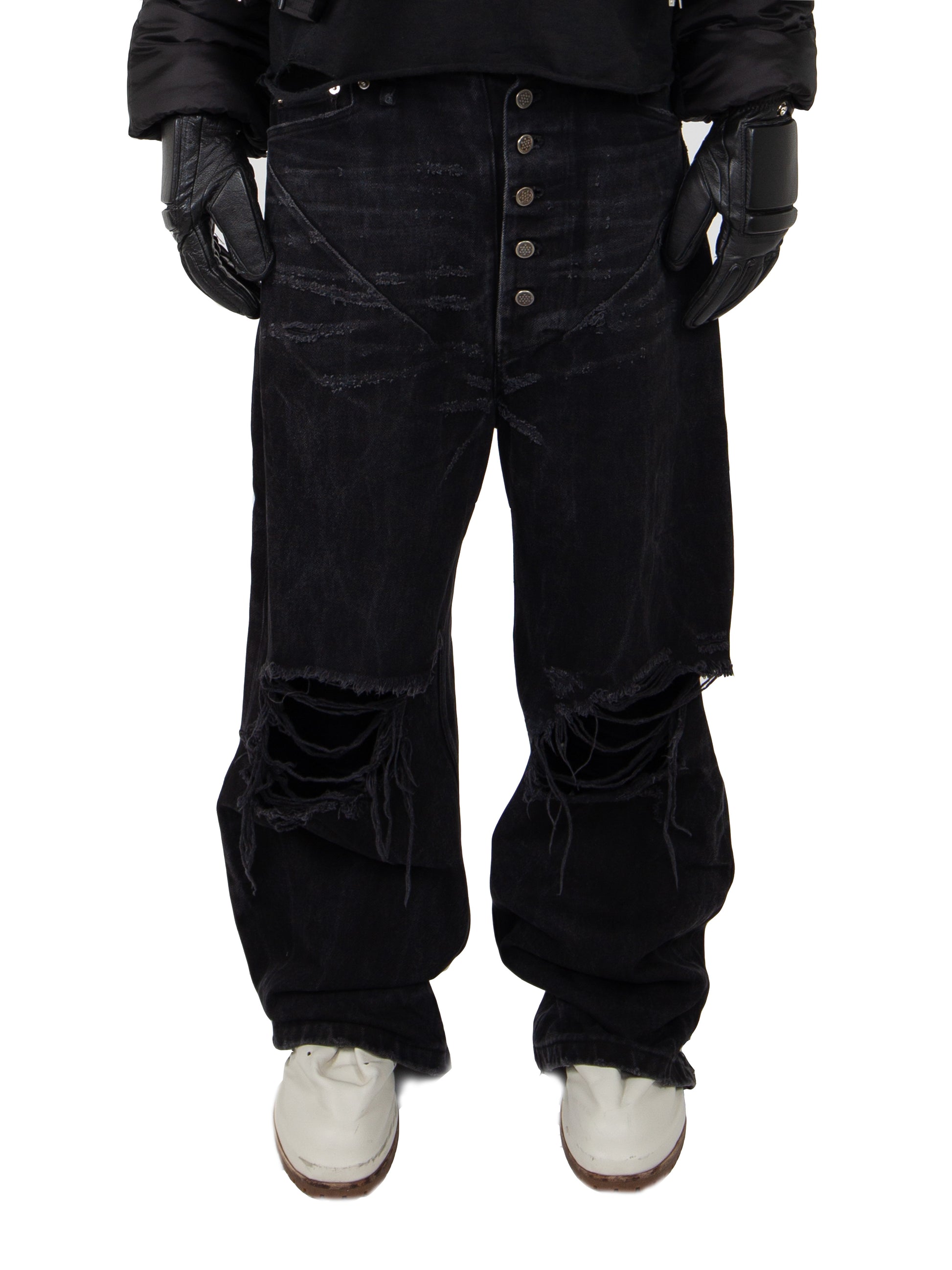 BLACK DISTRESSED RELAXED DENIM