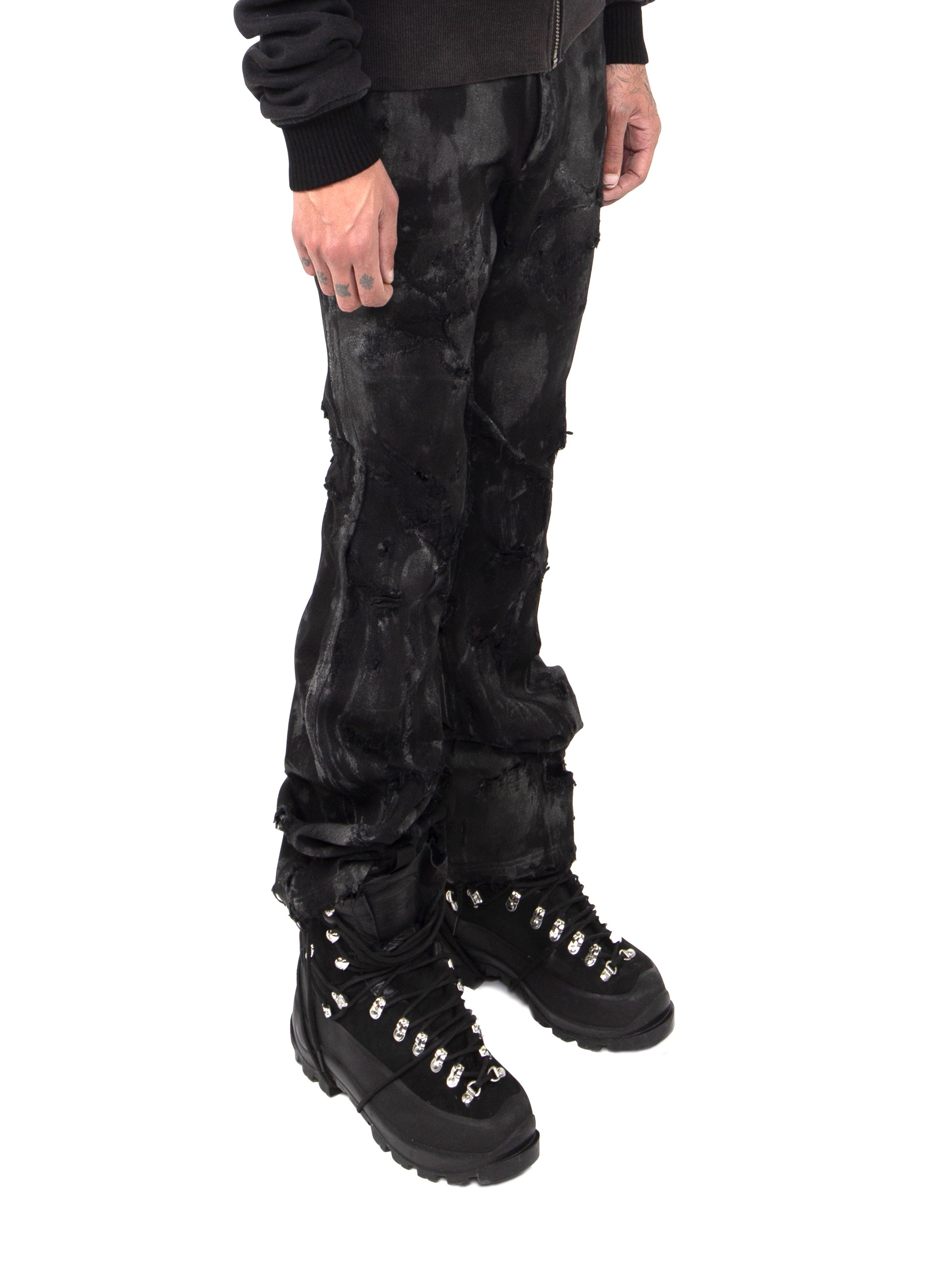 BLACK FLARED WAXED DENIM